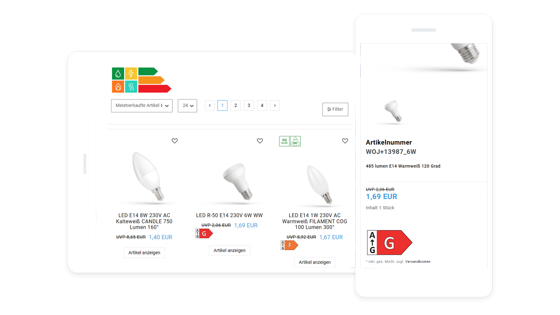 Mit dem Plugin können Sie Energiepfeile, Energie-Label und Datenblätter im Shop ausgeben.